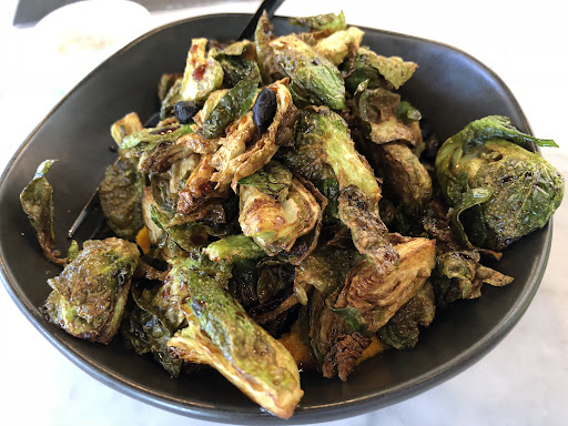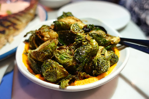 We added on a couple of generously proportioned sides â a pretty Heirloom Tomato Salad ($14) laid over light lemony ricotta, and Brussels Sprouts ($14) flash-fried then treated with oyster sauce, soy sauce and black pepper, cleverly counterbalanced by carrot puree â and had more than we could finish.