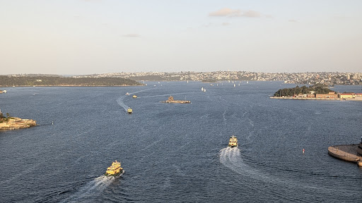 I will also make allowances for the fact that it had been an extremely warm day, and so won’t make a fuss about the melted butter drenching the sourdough roll that had gone stale. But I would have expected at least some ice to counter the heat: warm champagne, even if it is a Penfolds x Thienot Brut Rose, is just not enjoyable. The dressing for the Kingfish Shasimi was overpowering and too onion-y. the Wagyu/Shimo beef was ok, but not so rave-worthy as to even mention it’s exclusiveness (normally only available outside Australia - so we were told), the desert was basically 4 different deserts that didn’t go together. But I will sing praises for the main’s sides: a lovely mushroom puree with asparagus and Madeira jus (sadly the jus being too runny for me - it didn’t stick to anything). The service was great, but again lacked the special something. For example, I would have liked to know a bit more about the wines that the food was paired with, particularly since the evening was Penfolds themed. All up this was not an experience I would recommend paying $345 per person for. Get yourself a ticket for $25 instead and visit The Pylon during the day. You will miss the sunset, but it’s still an awesome view over the Harbour, the Opera House and the...