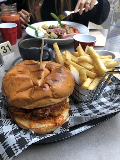 I went with the fried chicken burger with kimchi and chips and it was very satisfying. The fried chicken skin was satisfyingly crunchy, and the kimchi, while messy, was undoubtedly delicious, and I don’t even like kimchi that much (gasp!). Partner had a tuna Niçoise salad and I was surprised that it was served on a bed of beans, olives, potatoes, and something green like an olive with a stem. I’m not a fan of olives, but my partner found it to be quite good, and filling—we ended up taking some of it away with us.