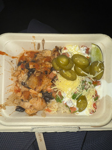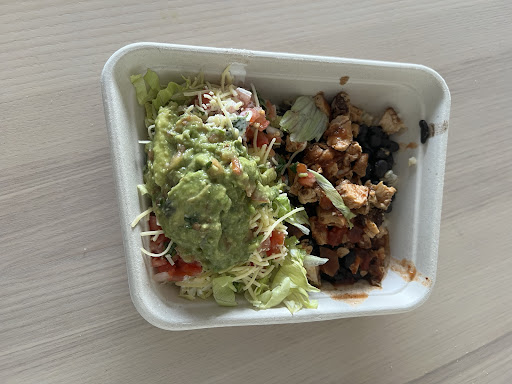 Now, the rice, beans, meat & cheese that's served barely fills 1/3 of the new smaller containers & then they fluff out the rest of the container with lettuce.