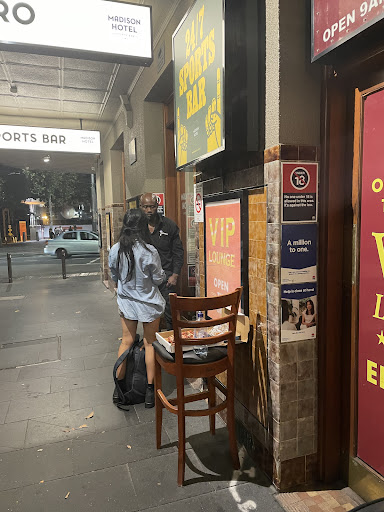 Read moreI was looking for a place close to central station to meet with a mate I hadn't seen in a few years on his travels through Sydney, we chose the Maddison originally. Upon getting there there was a large group of tradies that had occupied the outdoor seating area and decided to be as loud and rowdy (swearing and carrying on and having little wrestling matches on the sidewalk) as humanly possible, needless to say I went to the pub next door (to avoid a rowdy crowd) which was much quieter until the Madison cut off some of the tradies and they decided to move next door to the quiet pub with less than 10 non pokie patrons at the time including my wife, our friend and myself.