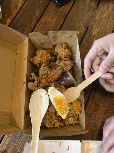 Entering the terraces food court as a group; the decision of where to eat was quite simple. The vibrant colours featured in Mamak’s village’s logo are a definite eye catcher. The first thing noticed is the cozy atmosphere: delightful choice of music and expressive artworks create a warm sentiment; one perfect to share a meal with friends in. My group tried a variety of dishes and the general sentiment was positive. The only comments were on how well the eggs were cooked although very flavourful. The chicken featured a simple marinade that could be assimilated to a healthy kfc. The rice is another story: perfectly spiced as a fellow reviewer would say. I was definitely pleased with this experience but believe that this chicken is in dire need of a sauce to accompany its slightly dry composure. The indoor and outdoor seating is just splendid. Big tables perfect for large groups as well as the occasional individual seating options if you’re feeling a little bit down on a certain day. I would definitely recommend this place if you are need a simple homemade meal.
