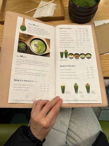 When ordering the matcha latte I got a soy large hot latte Was not told and no where in the menu was there mention of sugar. I got the drink and was shocked it was sweet so I asked the manager about it She said their drinks all Come with sugar and you need to specially request for it without