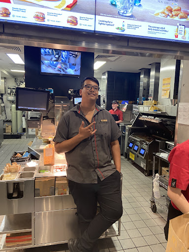 Coming to McDonalds brand standards and values for managers in a management team. This is appalling, this manager has downgraded maccas standards in every level and his shirt untucked, buttons off and as seen in the picture he previously worked with a long hair making food in kitchen with incorrect gloves.