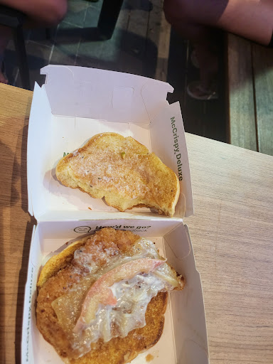 Finally, when my order arrived and I checked it immediately, it was exactly as I had ordered. Feeling relieved, I sat down and started eating the burger, but to my surprise, there was not a single piece of lettuce in my McCrispy deluxe burger. Normally, I would have just eaten it, but I was already feeling upset because my friend had a bad experience with them. So, I went up to the counter and showed them my burger, mentioning that it was missing lettuce. To my dismay, the female employees started giggling and mocking each other, saying, "No lettuce." I wasn't asking for a remake; I was simply lodging a complaint as a paying customer.