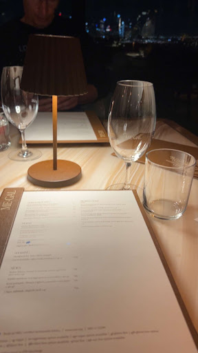 Read moreThe views were spectacular, the atmosphere was fine, the food was very average. We went for a family birthday dinner and figured a view back into the city would be a nice change. The sunset over the harbour bridge was spectacular and Me-Gal views did not disappoint. The cocktails (Tazzie devil, and Rose and Ella) were both very good. For appetisers we got watermelon and feta salad, burrata, and chips and dip. These were all considered medium dishes, but I’m not sure they would have filled a sparrow at breakfast. The chips and dip tasted great but the dip was a beet salad which was far too heavy for the wispy little cracker chips we got on top. The menu said the burrata could come gluten free but all that meant was we were served a cold ball of cheese with nothing to dip or eat it with. We ordered the lamb and the calamari as mains from the large dishes menu. The calamari was very nice but was more the size we had expected of the medium dishes. The lamb was huge and is designed for 2-3 people (although I think 4 could easily have shared). It was beautifully cooked but unfortunately had lemon juice and lemon myrtle all over the top, which was very tangy and did not balance in the dish. The side salad of mixed greens and pears was also nearly inedible due to the excessive lemon juice all over the fruit. The side of potatoes were great and well cooked but came with olive tapenade, which absolutely did not suit, and 2 of us bit into an olive pit. It felt like the dishes lacked a cohesive theme or flavour and did not balance throughout the meal. The restaurant is beautifully designed inside and the decor is fresh and looks sustainable. I was surprised at the number of very young children who screamed their way through dinner and changed the vibe of a place trying to market themselves as upscale dining (and priced as such). We had an enjoyable evening but will not return and would not list this as a must do...