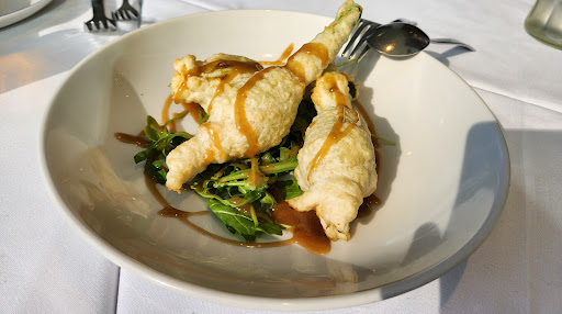We visited for lunch on this occasion and on that day they had a special menu offering a few different items so we opted for a serving of the zucchini flowers and from there standard a la carte menu we ordered Octapodi Tis Skaras (Bass strait BBQ octopus on roasted pepper and olive tapenade), Tilihti Fetta Me Meli (Filo wrapped goats and sheeps milk cheese, baked, drizzled with honey and sesame seeds), Paithakia (marinated lamb cutlets, grilled with potato, roast capsicum and caramelized onion), Xifias (QLD Mooloolaba Swordfish and prawns marinated in lime chilli and honey sauce, chargrilled on shredded cabbage), Exohiko (Lamb backstrap, kaseri cheese, truffle oil mushroom Pâté and pistachio wrapped and baked in folio pastry served with celeriac pureé (served medium).