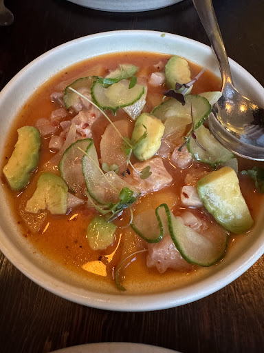 We had: Kingfish ceviche- nice, refreshing, very light flavour. The flavour is in the medley of the sauce so make sure you get it on your spoon with the kingfish rather than spearing the fish with a fork on its own.