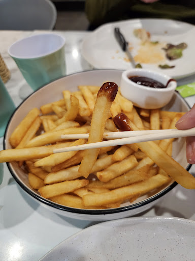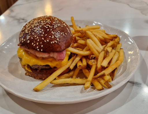Read moreYou HAVE to try this place if you're a lover of burgers or food or existing. The housemade brioche is perfection. They have a unique selection of burgers and sides to choose from. I got the classic cheese burger with some extra housemade pickles (including cucumber, korean radish and beetroot) and my partner ordered a chicken burger. The chicken was juicy and crispy but the cheese burger was an absolute godly creation. I highly recommend adding some radish and beet pickle from the extra pickles into the burger. The cheeseburger was flavourful with a patty that was not too thin but also not too thick. The fries were well seasoned and of a medium to thin thickness (my fave) and served well with their very very smoky housemade bbq sauce. The place was not super busy inside but they were taking a lot of online orders. I love the lowkey vibe and they had a great selection of hip hop and rap playing.