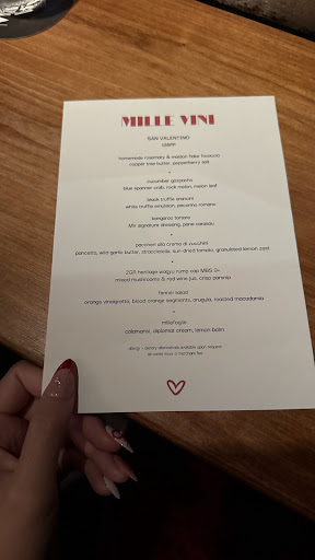 The go to dessert when eating Italian is the Tiramisu, which translates to cheer me up or pick me up and this dessert certainly did just that. The white chocolate tiramisu with amaro, was surprisingly light, the cream was stunning and the toasted macadamia on top provided crunchy texture and a slight bitterness. Always a great way to finish a meal. You can also pair your wine with a digestif or dessert cocktail. We thoroughly enjoyed our visit to Mille Vini, a perfect dining experience made all that much better with impeccable service The food arrived at a good pace with the waitstaff explaining details of the food and drink. We enjoyed the attentive service, with the tables being wiped and cleared often, as well as plates being replaced and the water glass constantly filled. Ando, who was heading up the team was also very charismatic, he had a fun, warm and welcoming personality and enhanced our dining experience. We dined A la carte, however they also have apertivo hour and a banquet menu available. We enjoyed all aspects of our visit, the decor, ambiance, food, drink and service and can wholeheartedly...