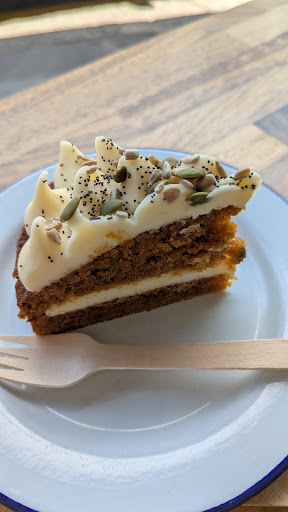 Mind you, I’ve only been to this place once. Coffee: average not worth going back again for. Carrot cake: weirdly gummy cake. It was either seriously underbaked or maybe made with gluten free ingredients or no egg. The cake slice has two layers and both were like a thick paste. I really don’t know how they couldn’t tell when they cut the baked cake into layers. Icing pretty good.