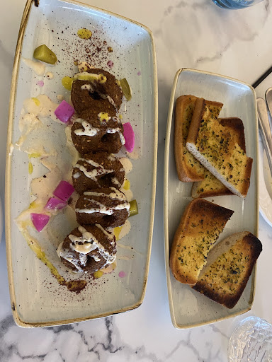 We went on a Sunday afternoon and there was only 1 other table in the large restaurant. There was one young boy serving and he just didnât seem to know what was going on. It took him about 10-15 minutes and us asking 2-3 times for him to bring our water and a Coke Zero. I asked if he could make an amaretto sour cocktail and he said he would ask the beverage person. He then ducked behind the bar on his phone (obviously googling the cocktail) then came back over and said they could make it. He then came back about 15 minutes later with a strange drink that tasted like whiskey. To start we had the Calamari which was delicious! Great batter and good flavours! We then had the falafel and garlic bread which we both really enjoyed! For mains we ordered their special hot plate chicken with lemon and garlic sauce and ordered 2 sides with it, sweet potato wedges and fries. The chicken was really good and was very flavourful, but wasnât very hot considering the sizzling hot plate and is quite expensive considering it comes with no sides. The sweet potato wedges were undercooked and over salted and the fries didnât come out until the end of the meal.