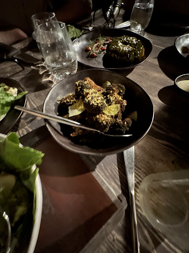 The food was also excellent. It's quite a small menu, which, in my opinion is a very good call, and the mark of a good restaurant. What they do, they do very well. We ordered everything on the menu with the exception of the fish which they had ran out by the time we got there. Everything was excellent, and due to many allergies in the group they accommodated us very well. I have an anaphylactic allergy, but after talking to the staff, I felt very safe eating there which goes a long way. Some special call outs to the bone marrow entree, which had these fermented mushrooms which were AMAZING, the side potatoes were incredible, and the whole chicken was a crowd favourite. Veggos and Vegans beware. They do have Veggo options, but there is meat everywhere, including hanging from the walls, it is a viking hall after all. If you order the bone marrow, you can do a shot out of the bone afterwards, something my group LOVED, and those who were drinking all needed to partake in.