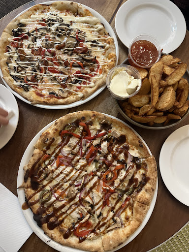 Food came very quickly. The pizza dough was really good. I ordered the Spicy BBQ Chicken pizza and I think they forgot to put a base sauce as it didn’t match the pictures and was incredibly bland and unseasoned. At one point, we questioned whether we were being pranked on a hidden camera show - great laugh (5 stars)! The Melanzane pizza was good. Portion sizes were good and...