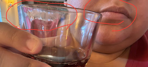 Please note the lack of lipstick on my lips and the lipstick on the glass ** The photo of the chicken was taken later in the day in my home as I...