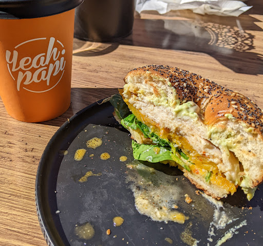 Read moreThis cafe serves a mean bagel and toasty! We would come here often if it was closer (they are on Regents Park). I had the Turkey bagel, it wasn't called that but it had turkey, avocado, fresh spinach and pumpkin. And goddang, it was amazing!!. The best bagel I had everrr!! The bagel itself was smashing. It came toasted and all ingredients were good quality and fresh. It had a bit of their special chilli sauce too. Hubby got the toasty with grilled chicken and mushroom with the 'bang bang' chilli sauce and melted cheese. It was so good we ordered another to share. Haha. It's worth the trek I tell you. The only down side is there's a bit of a wait on the food because they make it all fresh. The coffee was great. Yeah Papi brand never heard but it was a nice. The barista here makes it good! No wonder they have 4.7 stars out of 461 reviews. Well deserved. Go visit and try them you won't regret it trust me and the other 460 peeps who say they are good. Oh, and they're at an industrial area, parking may...