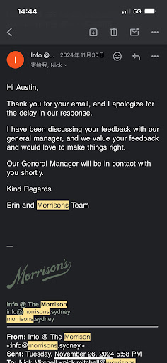 How dare she argue that we ordered it! Why would we lie about what we ordered or what we actually wanted! What possible motive would we have? The bill arrives with all three drinks charged!! The ones we did not order. I cannot say anything or keep going on about the drinks and cause a scene as it’s my wife’s birthday dinner, of which no service staff even mentioned to us or sat us at a special table for the occasion (why even have the question in the booking if you are not going to do anything with the information? it just sets an expectation that is not going to be met). We left and went to Bar 1880 and were served the most delicious cocktails for the same price and with exceptional service not costing a cent more! Even with complimentary sparkling water rather than $12 per bottle as charged!