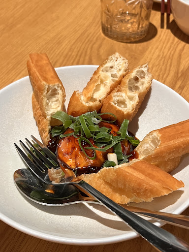 The sauce for the youtiao and burrata was extremely salty and directly poured over the cheese. For the youtiao, there were only 5 pieces for the four of us, approximately half a piece each.