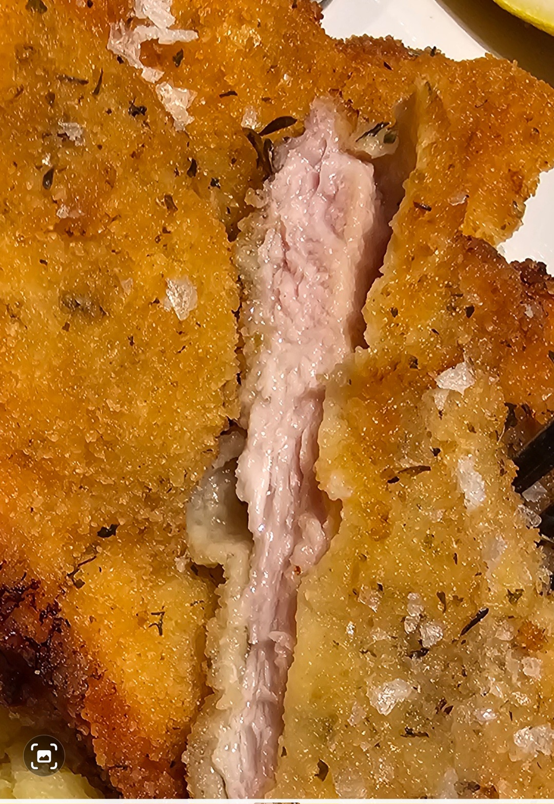 The jager schnitzel was undercooked, underwhelming and the breading was soggy. I cut into the side of the schnitzel and tasted it and it was not tender, but quite tough and soggy. I then cut into the middle and low and behold the chicken was raw.