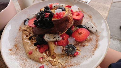 Read moreQuality dog friendly Cafe. Coffee is strong, medium and slightly acidic. The French toast was perfectly combined with the right amount of each ingredients. Cinnamon was on point, not overpowering but a nice additional flavour ontop of the sweetness, fresh pomegranate was the highlight of the dish for me. The blueberry and honey dogs shake was a big hit with my pup. It's really nice to see people put more effort than your standard frothy milk sprinkled with fake coco and call it a day. I definitely appreciate the sentiment and research put into it. Quality of each dish definitely justified the price. Service was genuine, ambiance;sort of a cozy modern wood feel.
