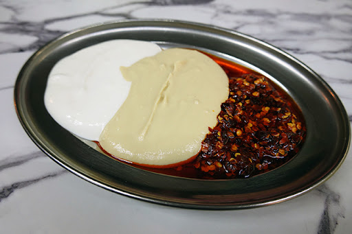 Picked up in still-warm Turkish bread, the hunks of lamb back strap and leg meat are tender and delicious. The chicken kebab is moist and well-charred, perfect against Turkish yoghurt garlic dip. Roasted chilli sauce and the orange chilli dip in the platter of Mixed Dips ($10) keeps things lively as we mow our way through the meats, cooling our mouths on mugs of house-made Lemonade ($3).