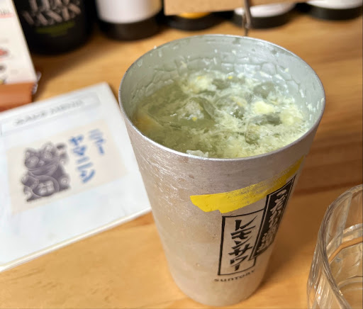 Most popular drink in Japan certainly has its reason. Lemon part in the drink should help you digest the oily oxtail ramen soup.