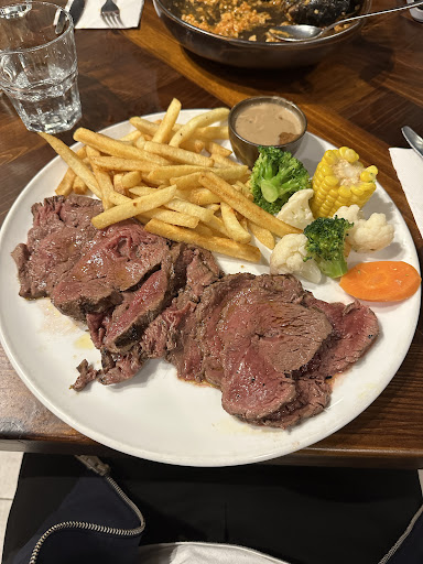 The main course was even worse. My filet mignon arrived nearly one hour later. I ordered medium, but what I received was completely overcookedâdry, tough, and absolutely unpleasant to eat. I complained to the waitress, who was apologetic and offered to have the kitchen prepare a new one, along with a free drink as compensation. I told her to skip the drink and just have the steak redone. After waiting another 15 minutes, the new âfilet mignonâ arrived. I was stunned, it looked nothing like a proper filet. Instead of a whole piece of steak, it was sliced into thin strips with zero presentation, looking unappetizing and cheap. Also missed the prosciutto wrap.