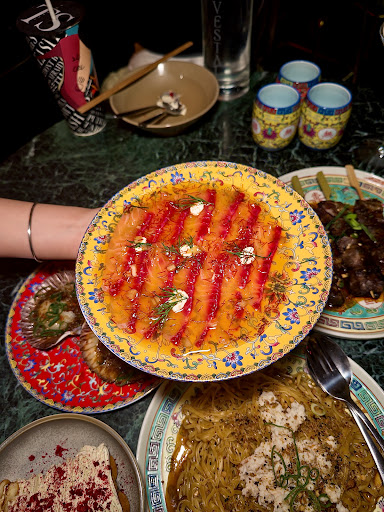 Read moreThe overall design is a combination of dark tones and neon lights. The slightly dim lighting gives the environment a mysterious atmosphere, making it perfect for having a drink after work or having a casual gathering with friends. The bar area is particularly impressive. The bartender mixes cocktails on the spot, moving with agility and even performing a little show. Just watching is already very atmospheric. 🍸 If you order their molecular cocktails, you can also see a crystal-clear bubble being shot out by a bubble gun, accompanied by the lights, creating an atmosphere like shooting a movie scene. 📸 ?? Salmon Gravlax: The homemade salmon is well-seasoned and pairs well with grapefruit, citrus juice, and yogurt sauce. The taste is particularly refreshing. It's a must-order appetizer. ?? Steamed Scallop: The steamed scallops are paired with homemade XO sauce and vermicelli, giving a direct burst of freshness. The fusion of sauce and seafood is truly stunning. ?? Wagyu Skewer: The Wagyu skewers are truly a pleasant surprise! They are seasoned with spicy soy sauce and peanut crumbs, crispy on the outside and tender on the inside, with a burst of juice. Beer is a great companion. ?? Handmade Prawn Wontons: The shrimp wontons are served with the store-made old lady's spicy peanut sauce. The flavors are extremely fresh and savory. You can't stop eating them. ?? XO Crab Noodles: XO sauce stir-fried crab meat noodles, with pork fat scraps added, is rich and flavorful, with a lot of steam. It's truly satisfying! ?? Jasmine Tiramisu: The jasmine-flavored tiramisu has a hint of fresh tea fragrance. It's not too greasy and is decorated with raspberries and small flowers. It's extremely beautiful for taking photos. ?? Here are some of my top picks from the drink menu: Kung Fu Hustle: With floral notes and rose syrup, it's a refreshing drink that's perfect for ladies. Copyko: Peanut butter whiskey + coffee + salted caramel, rich and smooth, like a grown-up version of a dessert. Miss Lychee: Full of lychee flavor, sweet but not cloying. It's the best drink and definitely worth ordering! The overall atmosphere has a chill nightlife vibe, yet also has a touch of Chinese fusion fashion, truly getting more beautiful as the night goes on. It's a one-stop experience for having a meal, having a drink, and...