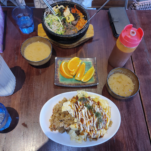 Food: The restaurant provided 5 slices of oranges, miso soup and water. The Chicken Katsu Omelet came with savoury fried rice, a layer of omelet above the fried rice and finally the chicken katsu with mayonnaise sauce on top. The chicken katsu was slightly below average, it was bland and the exterior was not crispy. But the fried rice was above average, it had a savoury taste. The Bibimbap beef was soft, overall the dish was average. The miso soup was too salty.