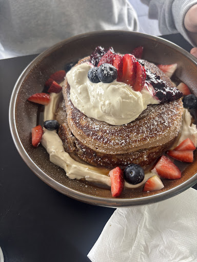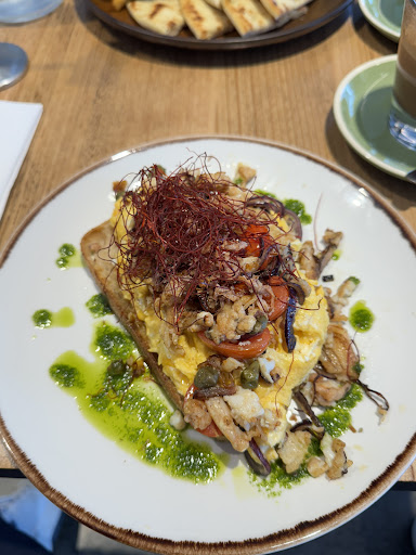 The food here is excellentâgenerous, beautifully plated, and full of flavour. The lamb skewer platter was a highlight: tender, perfectly grilled meat served with warm pita, golden fries, and a fresh Greek-style salad with feta. It felt hearty, authentic, and satisfying. Another standout was the scrambled egg dish, which came layered on toasted sourdough and topped with vibrant vegetables, herbs, and crispy garnishesâa creative twist on brunch that looked as good as it tasted.