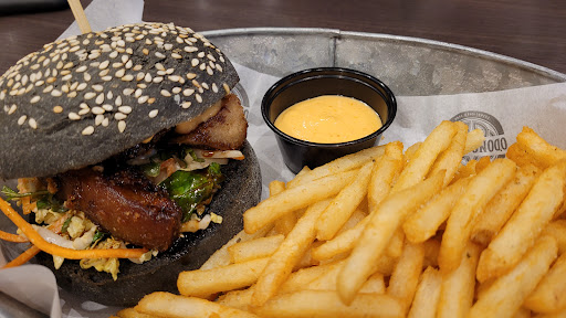 My husband enjoyed his burger. I got the chicken, potatoes, and brocolini. The chicken was dry and overcooked, but the sauce on top was super tasty, as were the potatos and brocolini. Both my sons nugget meal and my husbands burger meal were quite stingy on the chips, which were easily countable in their meals.
