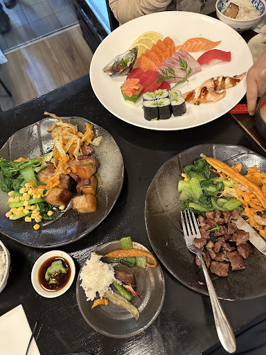 Sashimi platter was delicious with plenty of fresh variety Efficient service Small restaurant decorated with Japanese themed wall paper. Half of the store front is an open window which allowed fresh air and natural light to come in. This didnt make the restaurant feel too small. Overall, chill vibe with calming music playing in the background.