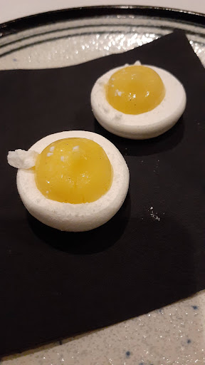 Dish 1: Snacks Arancini and tart. Good crunchy texture and a strong aroma. Dish 2: Capasanta Scallop confit, Celeriac Cream, Pickled Celery and Liquorice Scallop had a really soft texture. The taste of the celery and liquorice is mild and helps enhance the flavour. Dish 3: Gnocchetti Sicilian Pork Sausages, chestnuts and Pomegranate Really lovely aroma and probably the most filling part of the menu. The addition of the pomegranate combines the salty sausage with some nice sweetness. Dish 4: Spada (Swordfish in Spanish and Italian) Black Garlic Coated Chargrilled Swordfish Loin Can definitely taste the chargrilled aroma of the Swordfish Loin but the garlic is quite mild and could have been stronger in the dish. Chewy texture was very nice. Serving size was very small, as the photo will demonstrate a cube. Dish 5: Wagyu Charred Rib Cap MBS+ Highly quality meat, melts in the mouth and very soft texture The addition of the Witlof provides an interesting combination; however, try not to eat the Witlof by itself because it is really bitter. Olio Citrus Ganache, Salted Caramel, Olioā EVOO Gelato, Frozen Basil Merengue Very sweet and a good amount of sourness. Make sure to eat all the layers together for the best taste for sweet and sour. Petit Four Very sweet and quite similar in taste to the Olio