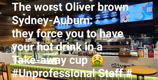 Read moreI never met her in my life but she that was kinda rude. NO welcome or a thank you, i am fully aware and I am not saying that you have to bow down to me and i ususall don't care about these kind of things but the store was not even that busy. And after like 10 to 15 mintes later i got my drinks. I ordered an Ice chai latte, a pink choco and a iced chocolate. It was sooo different from what it should have been. I work in Rhodes waterside so i frequently visit Oliver Brown for a quick drink before i work. So i know a little bit of what i am getting. It was poorly blended i even took pictures of it just in case someone will reach out to me. The pink choco is not even the same either. It tasted different and even looked different. The iced chocolate is also a joke. Why is the quality difference so big between the same store in different places? I am really disappointed i hope she was not racist to me just because i am of different origin. Well i hope things changes soon. Really do love Oliver Brown not this one in Auburn. IDK why i am not able to post the photos here but i did it in the other review section in the google map if you have time please check the pictures!!! UPDATE Well turns out a lot of people have bad review about the woman with big eyebrows. Yes she was the same person that...