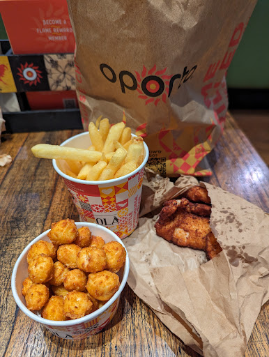 Read moreHonestly one of the worst experiences I've ever had in any capacity but particularly bad in the case of eating charcoal chicken. Whoever took my order was completely apathetic despite myself and my car passenger having a very cheery demeanour. She brushed us to the next window without us finishing our order and then we had to wait almost 10 minutes before being served. None of the order which was previously discussed at the intercom had been taken note of and we had to COMPLETELY re-do our order. Then after finally receiving the food ( I will say it did smell quite nice in the car) I was presented with this. Are you serious? Would you eat this? everything was clearly just thrown CARELESSLY into this poorly constructed cardboard box. It wasn't even busy there were no other people ordering food. This is completely unacceptable in my opinion. Have some pride in your work. I usually love Oporto and their chicken. Safe to say I will NEVER be buying another Half Chicken with 2 Sides and Pita Bread ever again.