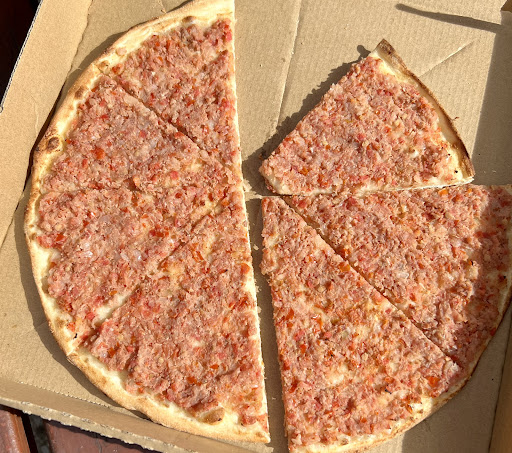 When I got home, the cheese was nice, but there was barely any meat.. I kept biting into onion though. There were little patches of meat throughout the whole pizza, whereas my regular manoush store makes sure to add enough.