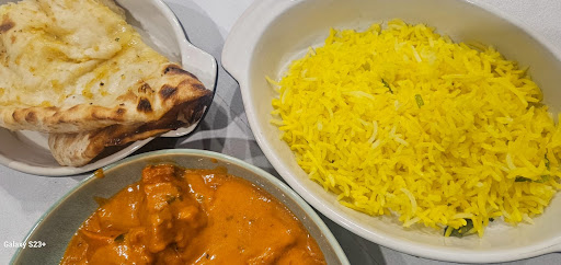 The herb naan was fresh and soft with a subtle herby aroma, ideal for scooping up rich sauces. The cheese and garlic naan, however, was the standout โ indulgently cheesy with a strong garlic hit, it paired especially well with the tikka masala.