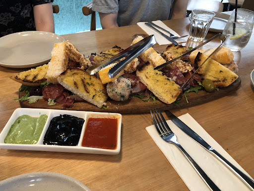 We ordered the salami and proscuitto board that is advertised as a share board with meat, pickles, flat bread, percorino cheese and mozzarella and olives. It should be renamed to the 'meat, one small boccincini, 6 olives and no percorino or pickles board. The' flat bread' was actually just crackers bought from Coles.