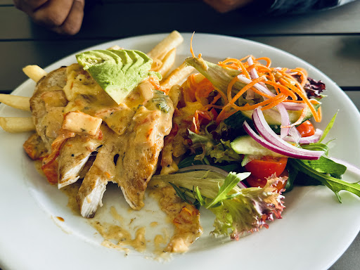 Read moreAwesome atmosphere and scenery for a meal, drinks, and catch-up. Service was lovely, and we mostly interacted with a friendly lady there. Was also free live music singing originals tunes. The food was nice but a little slow service when they got busy, but not an issue if you're planning to stay a while and grab some drinks. Has on-site parking if you do drive. Lots of views of water skiers and boats. Very nice vibe and curious about what the place is like at sunset.