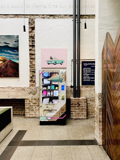 I truly enjoyed the building itself, the architecture, and the interior design. I especially liked the exposed concrete in combination with the untreated bricks in the walls, the white tiles and the simple metal chairs and wooden tables inside and the concrete table on the outside. Sleek, simple, and giving space to the coffee and food offering. Yet, the coolest object was the vending machine in the lobby, called the lobby boy.
