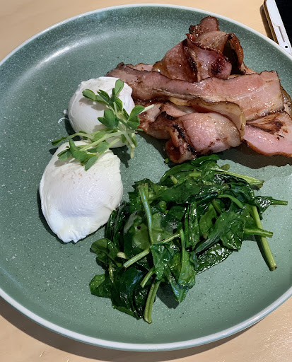 My partner got the breakfast plate, and the flavours were good - the eggs and relish in particular - but the serving size smaller than expected; it could have used more mushroom and tomato relish, and the bacon was maybe a little bland. The verdict on the breakfast plate overall was quite tasty but could perhaps be a little more generous...