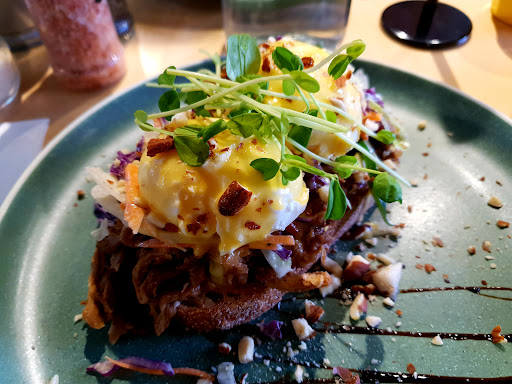 The staff are very friendly, greeting us on arrival, and the food was quick to get to our table. I ordered the pulled pork eggs benedict (always have to try the eggs benedict the first visit!), and while the hollandaise was a little subtle, perhaps this wasn't a bad thing when mixed with the pork! The pork itself was tender and delicious, the toast nice and soft (good to not fight the bread for my meal), and the eggs were perfectly poached. An interesting take on my favourite brunch dish!