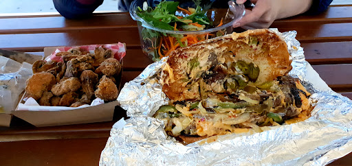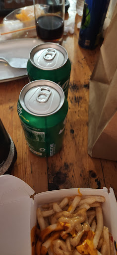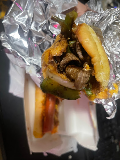 The food was extremely greasy and had soiled through its packaging, the taste was bland at best. The fries were only okay, some seasoning would have been nice, the cheesesteak had an interesting taste, so neutral…. the burger horrible, the hot dog horrible and the cheese sauce tasted like melted cheesy plastic.