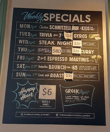 We visit the Phoenix every couple of weeks or so. The moussaka is to die for! It's the only place I know that serves a moussaka of that quality. The eggplant is caramelised and encrusted on the bottom of the serving dish. Delicious! We usually have the souvlaki too. The salads are very good as well. Do yourself a favour and get down to the Phoenix to get the moussaka because it is a huge change from the usual chicken schnitzels and burgers offered by most other pubs, cafes and restaurants in the vicinity of...