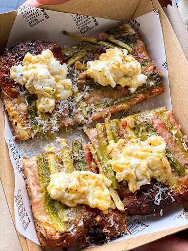 We scan the display case and note an array of treats from almond croissants to snails and some savoury goodies too such as the Pioik egg sandwich. We purchase the Pioik scrambled egg foccacia, which despite being $15!!! (For a small bread), was certainly extremely tasty. Crispy bread topped with a tomato sauce cheese and a dollop of scrambled egg on each piece.