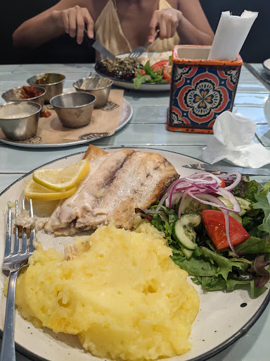 We went due to the 4.5 star rating. We ordered dips, and two 'off the grill' items: barramundi (mash and salad) and Scotch fillet with rice and salad. The pita and dips were excellent. However the 'grilled' fish was bad - very bad. The fish tasted watery. Like it was thrown frozen on to a grill. It was not crispy on the outside and not well cooked inside. The salad tasted like (literally) pre-packaged supermarket salad thrown on a plate. No dressing, slightly wilted and no favour. The mash was ok - just. I was appalled as fish is not that hard to make and the dish cost $30. The steak was ok, but not great and that cost $38. On service: the waitress was super nice. But the food also took ages to come out, although the place was quite empty (about 2pm). We got no cutlery, serviettes, or salt/pepper, which the fish needed badly. Also, the doors were open so the whole time we were shooing three or four flies buzzing around our food/drinks. Summary: Perhaps other things on the menu are better, but the stuff we had was so average, with the fish bordering on inedible. I don't mind paying, but I do expect some...
