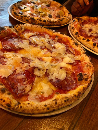 Margherita – A classic done right, with a beautifully thin crust, rich San Marzano tomato sauce, fresh mozzarella, and fragrant basil. Pepperoni – Generously topped with spicy, slightly crispy pepperoni and melted cheese, delivering a satisfying kick. Quattro Formaggi – A cheese lover’s dream, blending mozzarella, gorgonzola, parmesan, and ricotta for a creamy, savoury bite. Diavola – A fiery option with spicy salami, chilli flakes, and a bold tomato base, perfect for those who like heat. Truffle & Mushroom – A gourmet delight with earthy mushrooms, black truffle oil, and a hint of garlic. Neapolitan-style Pizza – Cooked in a wood-fired oven, with a perfectly blistered crust and delicate char, bringing out the best flavours. Each pizza is served hot, fresh, and made to perfection. The ingredients taste high-quality and authentic, making...