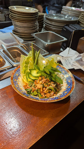 Read moreHeard about this place and was intrigued by the menu, so two of us arranged to have lunch there last weekend. Things must be pretty tough in Sydney as restaurants are now asking for a credit card deposit, and Pork Fat was no exception. Says a lot about the integrity of patrons generally that restaurants have had to resort to this practice. The seating is not wonderful, but it’s a step up from another Thai Favourite, Spice I Am, where you may as well be sitting on milk crates. Pork Fat has an awkward seating arrangement on the left of the entry on the ground floor, there’s a set of stairs to a mezzanine level, with a number of tables for two or four. I don’t know how you’d comfortably fit 6 or 8 so make sure you inspect the place and figure out how you’d position everyone before booking for a party that size. We brought our own champagne and were happy to pay the $20 corkage albeit a little steep but still a reasonable ask. On to the food. We chose the pork fat larb, the chicken Massaman curry and the prawn and snow peas and some rice. The Pork Fat Larb was seasoned precisely to our taste, in the restaurant’s range of medium spicy…we could have taken a bit more heat but this was good. The crunchy shattered crackling dispersed throughout the dish elevates the texture of the larb, and the powerhouse combo of lime juice, chili, sweetness and salt absolutely makes the dish pop. Honestly, this was an explosion on the taste buds, best larb I’ve had in Sydney. The chicken curry was a dish of meltingly falling off the bone chicken with potatoes in a luscious, oily in the right way sauce that only Thais know how to execute, superbly flavoured. They were upfront and told us the prawn dish ($40) has 3 prawns, do we want an extra prawn for $8, we did. Not a bargain but these were large, fresh delicious prawns and we enjoyed the dish. I’d definitely go back, and if your taste buds are feeling a little jaded from too many neighbourhood Thai restaurants, this will bring them back to life...