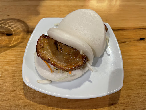 We ordered two pork buns, a bonito ramen and a grilled unagi don (rice bowl). The braised pork of the pork bun was nicely marinated and tasty but personally I thought there could be more topping accompanying the pork that would combine well with the flavors. The ramen was nice with chewy noodles and a broth that had a very strong bonito flavor. What didn't work out very well was the grilled unagi don. Although the rice was seasoned and flavorful it was either overcooked or cooked with too much water which made the rice soggy. The rice grain structure was nowhere to be found. The unagi tasted prepackaged and had a earthy flavor to it. The yellow radish and marinated greens that accompanied the rice was a nice touch but it didn't compensate the sogginess of the rice. When commenting on this to the staff they could only inform the kitchen about it and apologize because all they had was the soggy rice so they couldn't change anything about the dish.