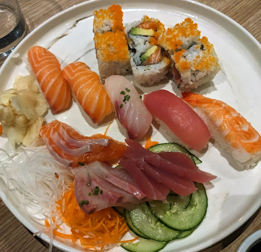 Came here on a Wednesday night and was pretty busy. Not sure why though. Service was horrible, Food was average, and the tables are so squashed together the waitresses behind was being wiped on my partner shoulder every 10 minutes to attend the other tables. We were put into a corner table and it felt like we were overlooked leaving us feeling hungry and sad when we just wanted to order or request extra utensils. After waiting a while just to order (20mins) I had to haggle one of the waiters to get his attention when he was cleaning another table. Food came and the miso soup was served with no soup spoon, after asking for one nicely to a waitress, it seemed as if I was annoying her for making her go get a spoon. The miso soup was also not hot, it was below lukewarm. The rest of the food was okay, the popcorn prawn was probably the best thing there but the tuna tataki was way over cooked and barely had any pink in the middle. After ending with another miso soup (an opportunity for redemption) it was served the same temperature again, with no spoon. I may be misunderstanding that it isn’t supposed to be served with a spoon, however she knew I would have to ask for one as I did before. Instead she dropped it off and before I could say anything she walked away and completely ignored me, going to the other side of the room. I asked another waiter who was quite warm in his approach but gave me a ice cream metal spoon that was flat and hard to eat soup off of. I gave up at this point and paid the $150 bill like a clown because this had to have been a prank. Wouldn’t...